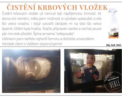 - Účinně odstraňuje silné nánosy na skleněných dvířkách krbů a kamen a dokonale si poradí s mastnotou.